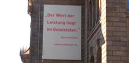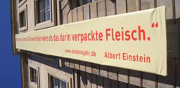 März 2005 wirbt Einsteins Ausspruch „Die größten Wissenschaftler sind